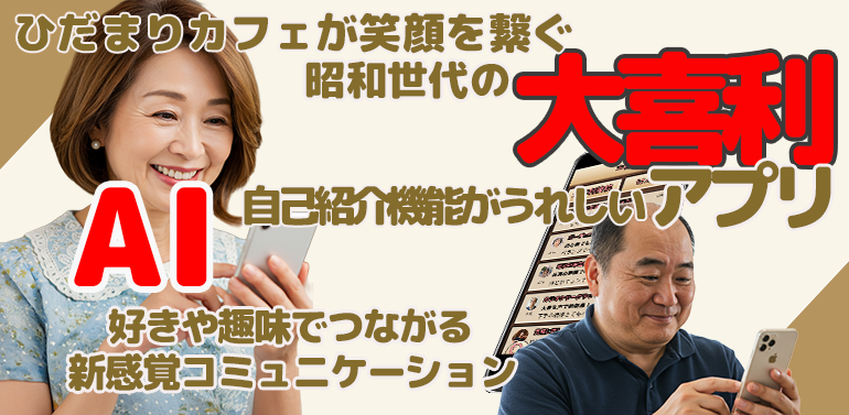 「ひだまりカフェ」は、昭和の笑いとぬくもりを大切にした、中高年・シニア向けの大喜利&交流アプリです。まるで陽だまりのカフェのように、日常のひとときにクスッと笑える話題で心がほぐれる——そんな場所を目指しています。